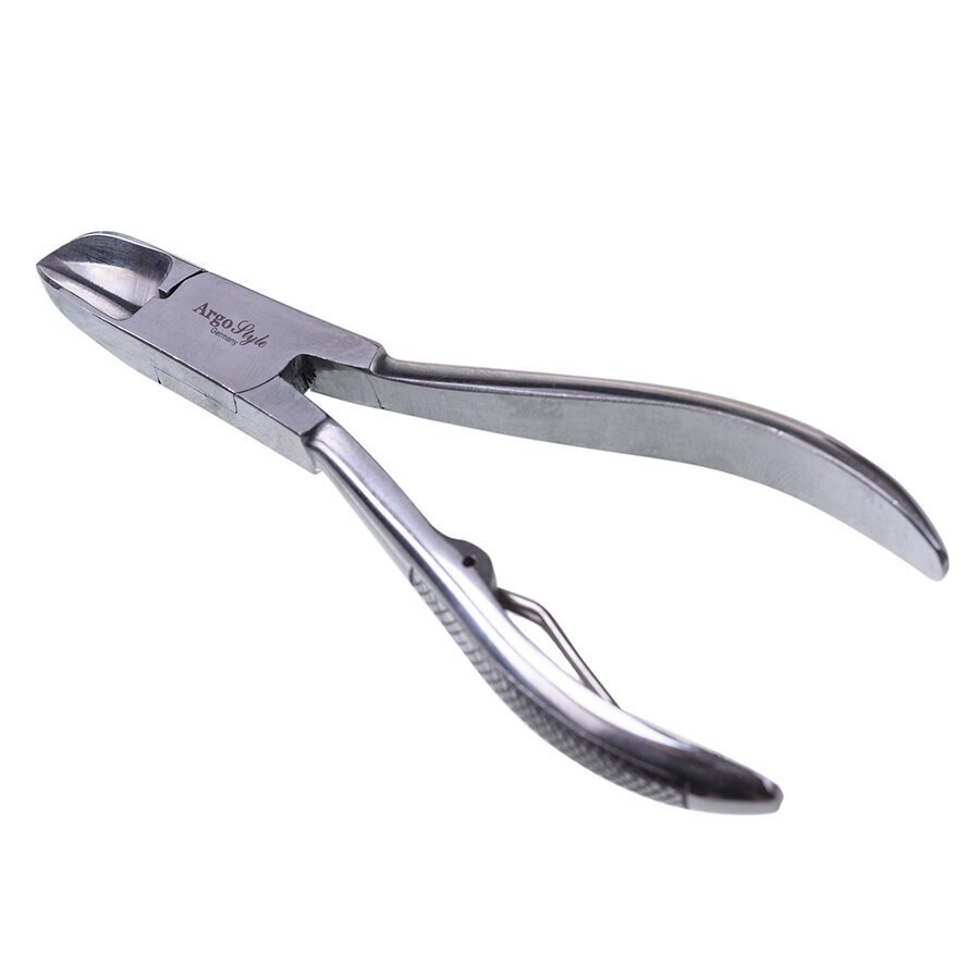 Педикюрные кусачки серебристого цвета предназначены для профессионального педикюра. Кусачки изготовлены из стали высокого качества. Позволяют легко и без усилий подстригать ногти на ногах, а также с их помощью легко решить проблему вросшего ногтя. Острые концы, качественная сталь позволяют делать обработку ногтей и кожи быстрой и качественной. Форма кусачек удобная, идеально располагается в ладони. Инструмент очень удобен в использовании и с лёгкостью справится с любой задачей, в отличие от ножниц.